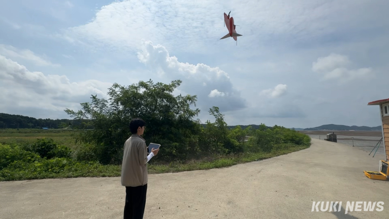 충남도 토지관리과가 디지털 갯벌지도 구축을 위해 드론으로 정사영상을 촬영하고 있다. 충남도가 드론을 활용한 디지털 갯벌지도 구축 사업을 올해도 이어가며 단순한 공간정보 구축을 넘어 갯벌 안전사고 예방과 대응 지원까지 활용 범위를 확대한다.