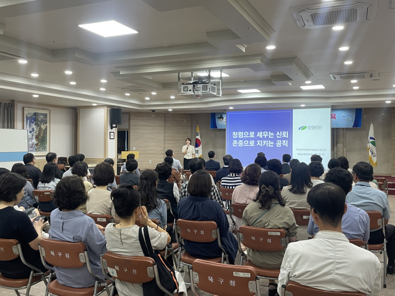 북구청은 교육을 단발성 행사로 그치지 않고 직급·경력별 맞춤교육을 정례화한다는 계획이다. 또 청렴교육 성과를 모니터링 지표와 직접 연계해 실질적인 변화로 이어갈 방침이다.