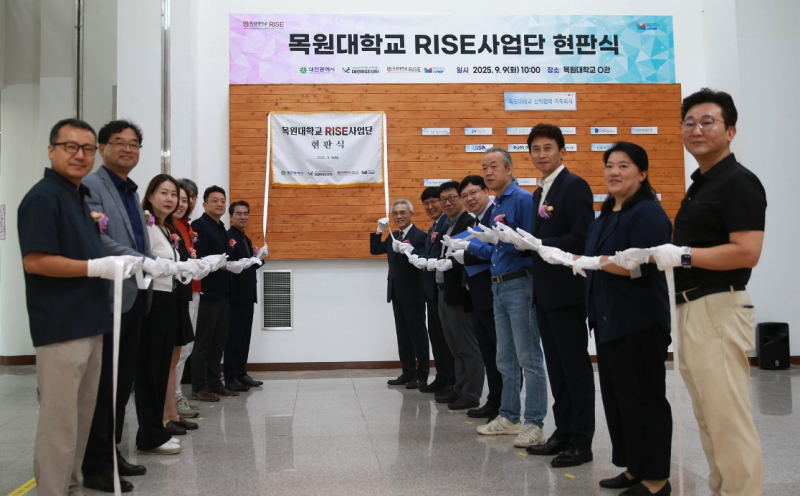 목원대는 지난 9일 산학협력관에서 이희학 총장과 정철호 RISE사업단장, 주요 보직자 및 RISE사업 관계자들이 참석한 가운데 사업단 현판 제막을 했다.