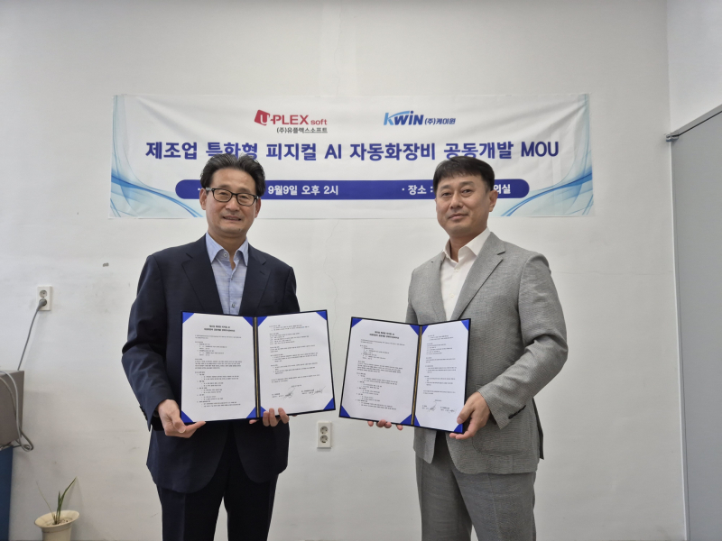제조업 혁신을 위한 차세대 자동화 기술 개발에 국내 기업들이 손을 잡았다. 산업 자동화 전문기업 케이윈과 AI 솔루션 기업 유플렉스소프트가 ‘제조업 특화형 피지컬 AI 자동화장비 공동개발’을 위한 업무협약(MOU)을 체결했다고 10일 밝혔다.