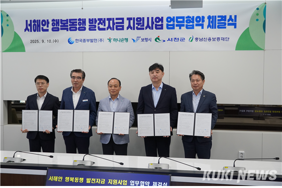 충남신용보증재단은 10일 중부발전 본사에서 한국중부발전, 하나은행, 보령시, 서천군과 함께 ‘서해안 행복동행 발전자금 지원사업’을 위한 5자간 업무협약을 체결했다.