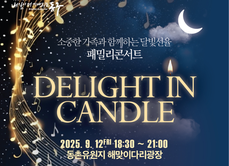 대구 동구청은 오는 12일 오후 6시 30분, 동촌유원지 해맞이 다리 광장에서 2025 동구 패밀리콘서트 ‘Delight in Candle’을 개최한다.
