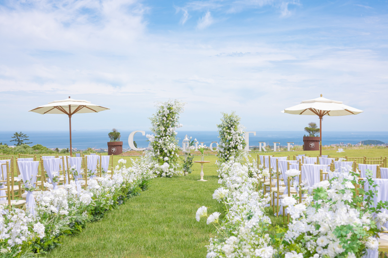 캠퍼트리 호텔앤리조트는 웨딩 공간으로도 주목받고 있다. 연회홀뿐 아니라 제주 바다 전망을 살린 가든 웨딩, 지인만 초대하는 스몰 웨딩까지 리조트 내 다양한 스팟을 활용해 여러 형태의 예식을 진행할 수 있다.