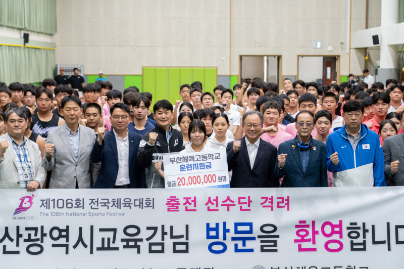 김석준 부산시교육감이 다음 달 부산에서 열리는 전국체육대회를 앞두고 10일 오후 영도구에 있는 부산체육고등학교를 방문해 출전 선수단과 교직원을 격려했다.