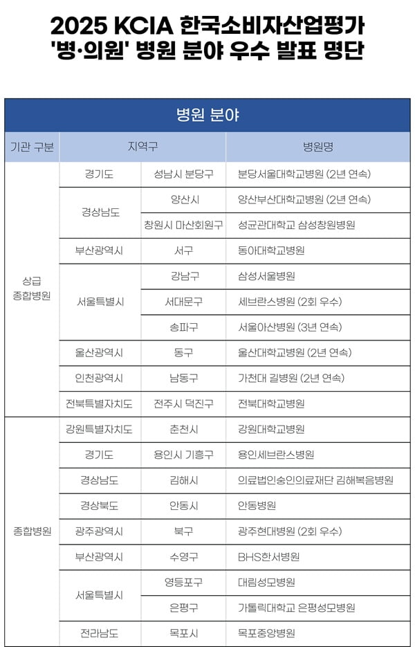 ‘한국소비자산업평가’는 환자의 실제 경험을 바탕으로 의료기관의 서비스 품질을 평가하는 제도다.