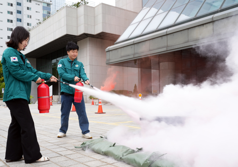 참여 직원들은 자동심장충격기(AED) 사용법, 심폐소생술, 응급처치법 등 실습 교육을 받은 뒤 실제 화재 상황을 가정해 인명 대피 유도, 소화기·옥내소화전 활용 화재 진압 훈련을 진행했다. 이어 스프링클러 동작시험과 소방펌프차 방수포 시연도 이어졌다.