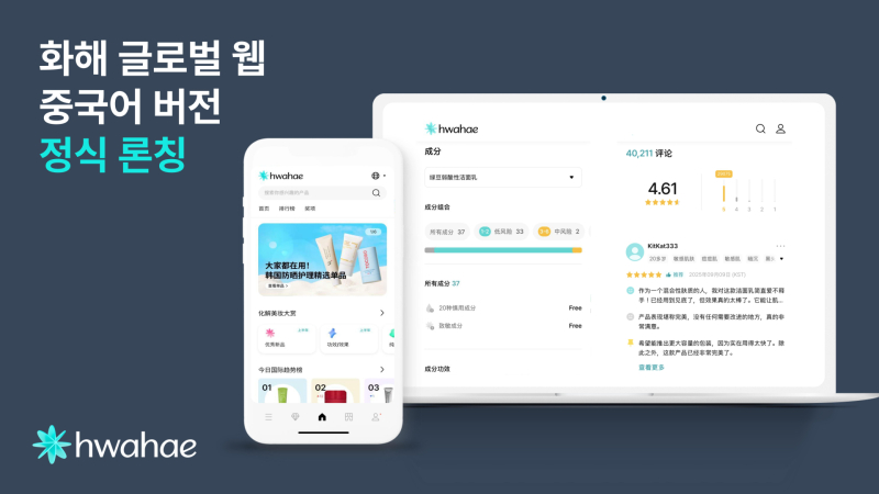 중국 내 K뷰티 정보 수요가 확대되는 가운데, 화해 글로벌 웹의 중국 이용자 순위는 올해 1월 50위권에서 8월 21위로 상승하는 등 빠른 성장세를 보였다. 이에 화해는 중국어 버전을 신속히 출시했다.