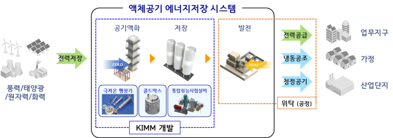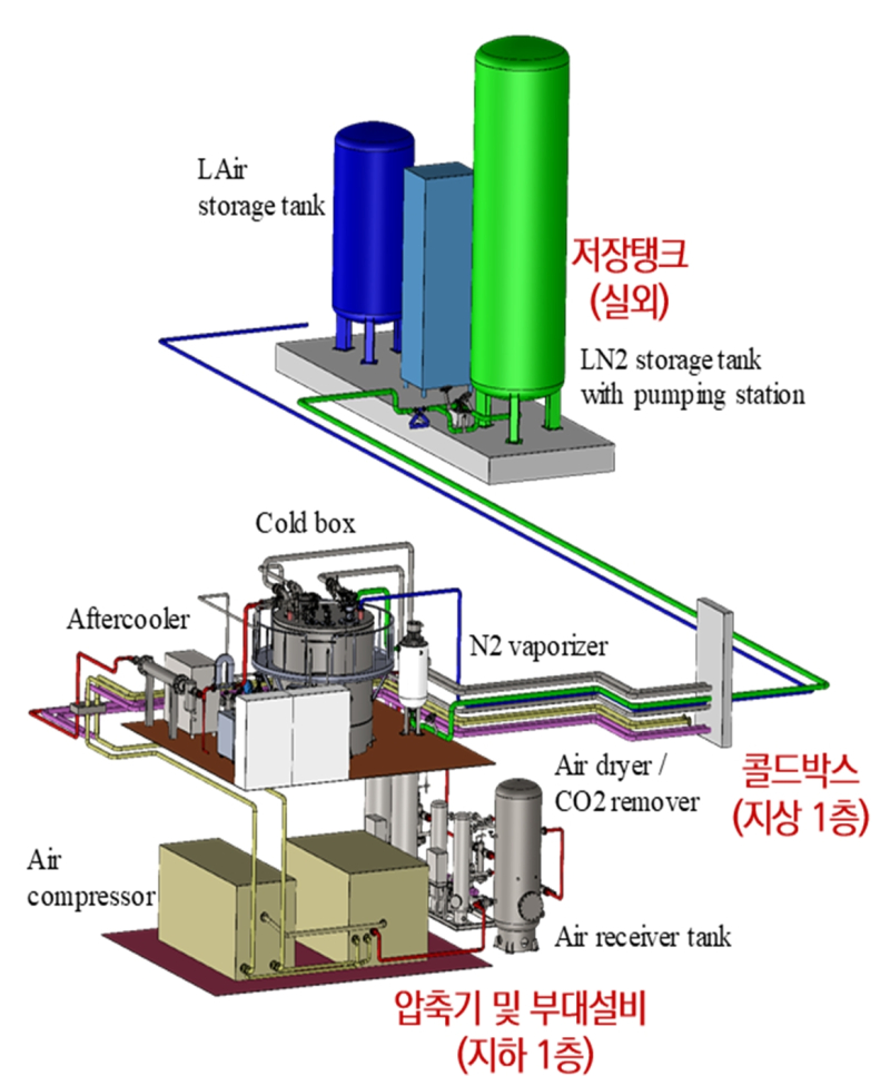 액체공기 에너지저장시스템은 잉여 전력으로 공기를 액체 상태로 만들어 저장 후 전력 수요가 높을 때 저장한 액체공기를 이용해 발전하는 장치다.