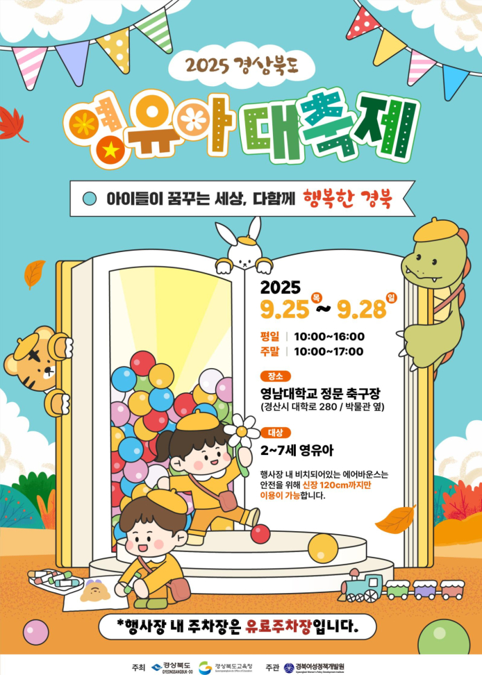 경북도와 경북교육청은 저출생 극복과 아이 우선 문화 정착을 위한 ‘2025 경북도 영유아 대축제’를 오는 25일부터 28일까지 4일간 영남대학교 경산캠퍼스에서 공동 개최한다고 12일 밝혔다.