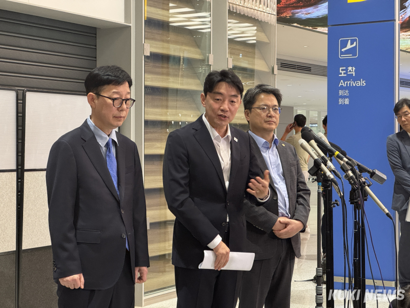 이날 입국장에서는 강훈식 대통령실 비서실장, 문신학 산업통상자원부 제1차관, 박윤주 외교부 제1차관 등이 참석해 모두발언 및 질의응답 시간을 가졌다. 박 차관은 이 자리에서 “비자 문제에 대해 종합적으로 대비할 것”이라며 “한미간의 워킹 그룹도 만드는 등 중요한 발판이 마련됐다”고 밝혔다.