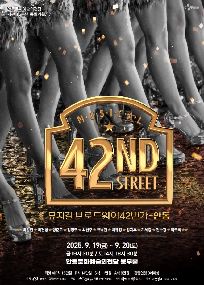 안동문화예술의전당이 개관 15주년을 맞아 특별기획 공연으로 뮤지컬 ‘브로드웨이 42번가’를 무대에 올린다. 공연은 오는 19일부터 20일까지 웅부홀에서 총 3회 진행된다.
