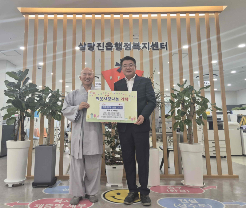 밀양시 삼랑진읍에 소재한 부은사(주지 지원스님)는 12일 추석 명절을 앞두고 삼랑진읍 행정복지센터를 찾아 백미 250kg(63만원 상당)을 기탁했다.