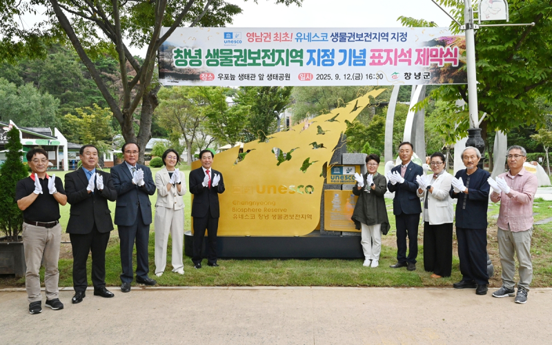 창녕군은 영남권 최초로 유네스코 생물권보전지역으로 지정된 것을 기념하는 표지석 제막식을 개최했다.