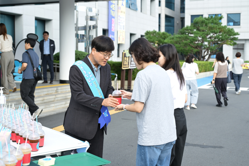 이날 캠페인은 시청 정문 앞 광장에서 '나 때 말고, 라떼는 청렴이지!'라는 문구가 새겨진 커피를 직원들에게 전달하며 진행됐다. 케이팝 데몬 헌터스를 패러디한 '청렴 흔들림 없는 우리의 GOLDEN' 응원 타올을 배부해 흥미와 참여도를 높였다.