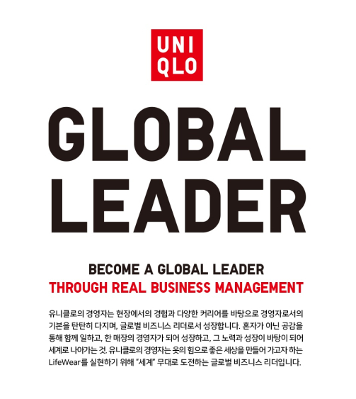 글로벌 패션 브랜드 유니클로(UNIQLO)가 오는 30일까지 2025년 하반기 신입사원 공개 채용을 진행한다고 15일 밝혔다. 모집 대상은 ‘UMC(UNIQLO Management Candidate·유니클로 경영자 후보자)’다.