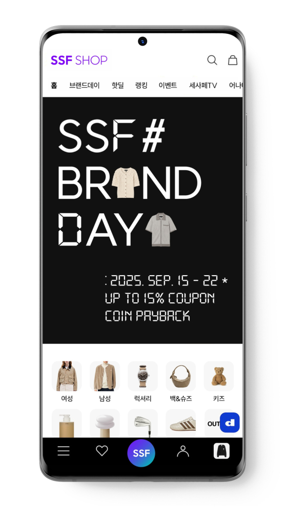 온라인 플랫폼 SSF샵에서는 15일 오전 10시부터 22일 오전 9시 59분까지 브랜드데이 프로모션이 이어진다. 신상품 할인 쿠폰을 지급하고, 행사 기간 구매 금액에 따라 ‘퍼플 코인’을 페이백하는 이벤트도 진행된다.