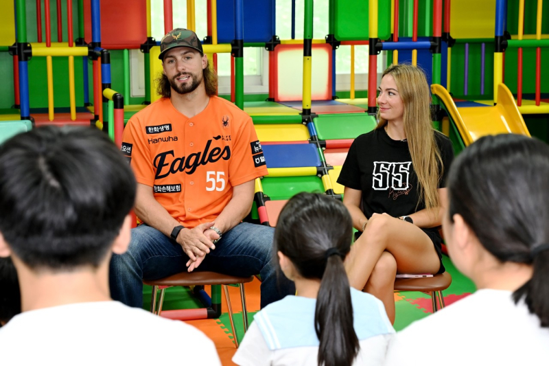 프로야구 한화 이글스 외국인 투수 와이스 부부가 지역 아동센터를 깜짝 방문해 어린이들과 특별한 시간을 보냈다.