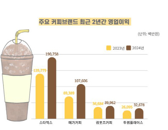 실적도 문제 삼았다. 스타벅스는 지난해 매출 3조원대를 기록했고 영업이익은 전년보다 36.5% 늘었다. 메가MGC커피는 4년간 매년 평균 72.6%의 매출성장률을 보였으며, 투썸플레이스 역시 영업이익이 25.2% 증가했다.