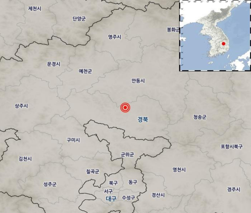 기상청과 경북소방본부에 따르면 15일 오후 3시 49분 56초경 의성군 북서쪽 8km 지역에서 지진이 발생했다. 진앙은 북위 36.41도, 동경 128.64도이며 깊이는 14km로 측정됐다.