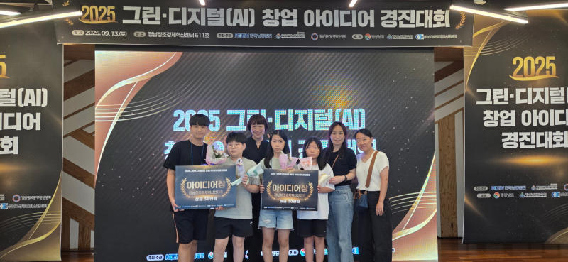 창원시설공단 산하 늘푸른전당 청소년 동아리 2개 팀이 13일 경남창조경제혁신센터에서 열린 ‘2025 그린·디지털 창업 아이디어 경진대회’에서 아이디어상(경남창조경제혁신센터장상)을 각각 수상했다.