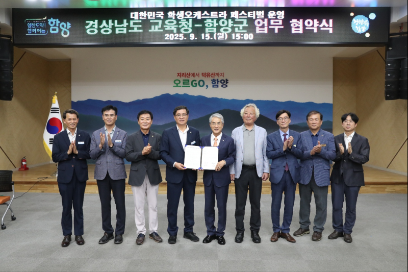 경상남도교육청(교육감 박종훈)은 15일 함양군청 대회의실에서 함양군과 ‘대한민국 학생오케스트라 페스티벌’ 개최를 위한 업무협약을 체결했다.