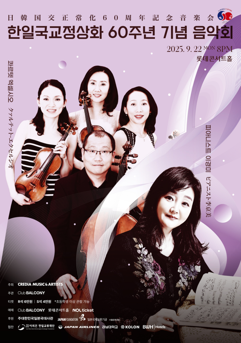 이번 공연은 한일 양국 우정과 상생의 메시지를 음악으로 전하는 자리로 일본 대표 현악 4중주단 ‘콰르텟 엑셀시오’가 함께 무대에 오른다.