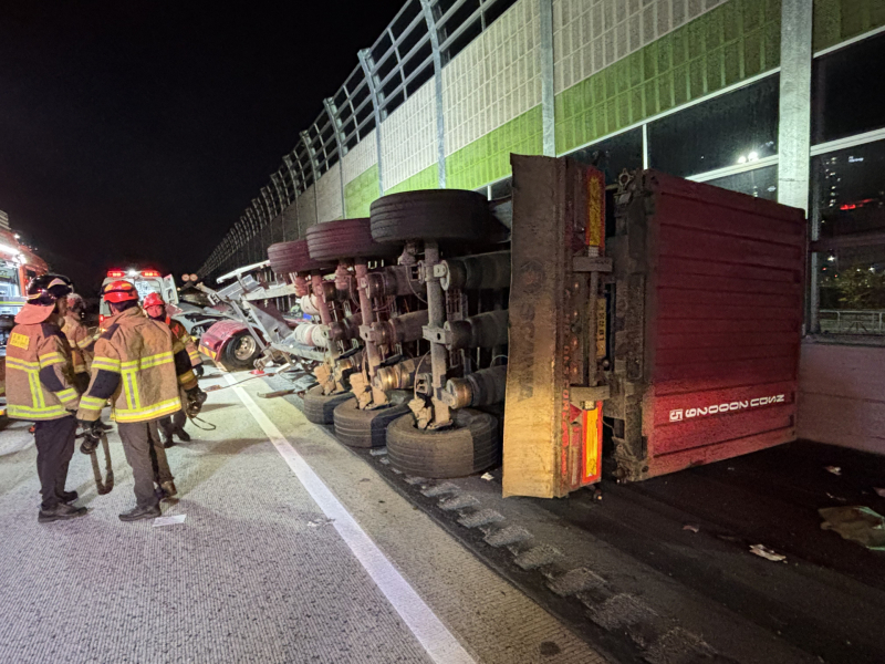 경부고속도로 달리던 화물 트레일러 넘어져 30대 운전자 숨져