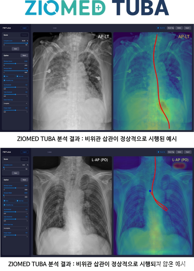 지오비전은 AI에 기반하여 비위관 이상 삽관을 실시간으로 탐지할 수 있는 ‘ZioMED TUBA’를 선보인다.