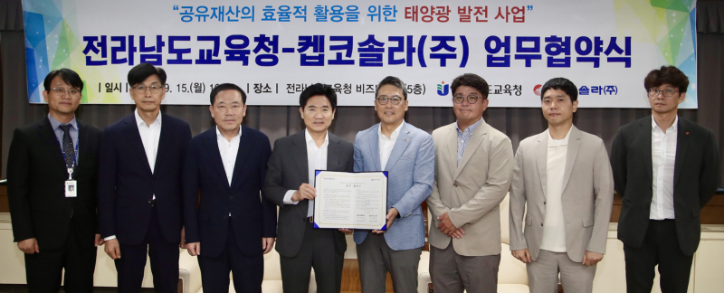 전남교육청는 지난 15일 청사 5층 비즈니스실에서 켑코솔라㈜와 ‘공유재산 태양광 발전사업 협약’을 체결했다.