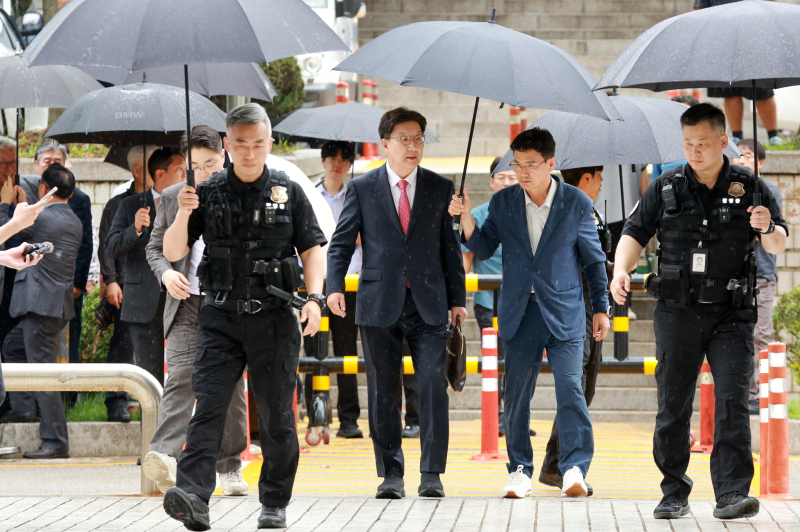 윤석열 정부와 통일교 간 ‘정교 유착’의 발단으로 지목된 국민의힘 권성동 의원이 16일 서울 서초구 서울중앙지법에서 열린 구속 전 피의자 심문(영장실질심사)에 출석했다.