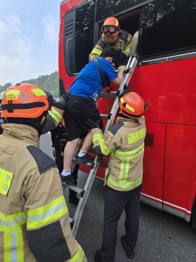 사고가 난 전세버스에는 달성군 한 초등학교 5학년 학생 72명이 타고 있었으며, 12명이 경미한 부상을 입고 인근 병원으로 옮겨졌다.