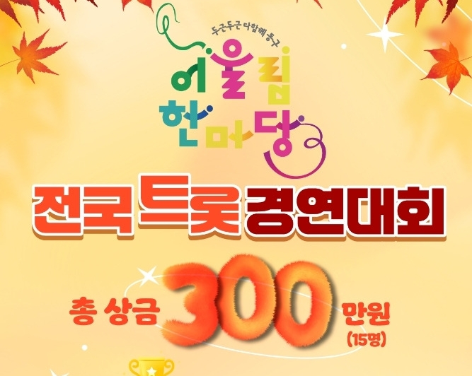 윤석준 동구청장은 “트롯은 남녀노소 누구나 즐길 수 있는 국민 음악으로, 끼와 열정을 가진 많은 분들이 참여하길 기대한다”며 “이번 대회가 지역 문화 기반을 넓히고 새로운 문화 역량을 밝히는 계기가 될 것”이라고 말했다.