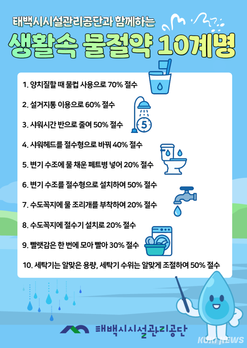 아울러 직원 대상 양치컵·텀블러 사용 캠페인, 절수 아이디어 제안, 절수 다짐 운동 등을 통해 내부 절수 문화를 확산하고, 이용객 대상 샤워 5분 Save 캠페인, 임대주택 세대별 절수 안내문 배포 등 참여형 캠페인도 함께 추진한다.