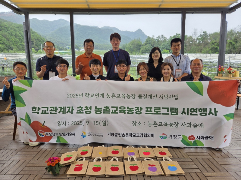 거창군 농업기술센터는 지난 15일 주상면에 있는 농촌교육농장 사과숲애에서 ‘농촌교육농장 학교연계 홍보시연 행사’에 거창교육지원청, 거창공립초등교감단, 경상남도농업기술원 관계자 23명이 참석했다고 밝혔다.