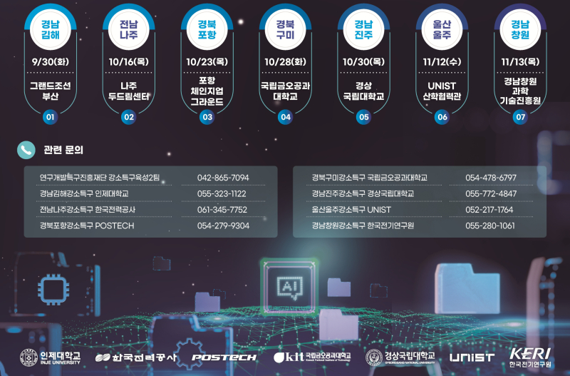 지역별 일정은 김해(9월 30일), 나주(10월 16일), 포항(10월 23일), 구미(10월 28일), 진주(10월 30일), 울주(11월 12일), 창원(11월 13일)이다.