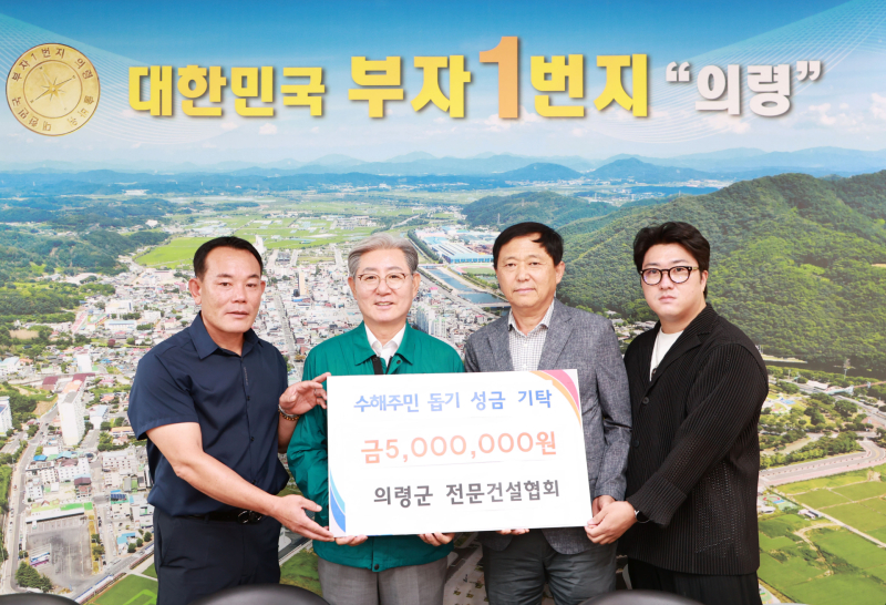 의령군전문건설협회는 최근 집중호우로 큰 피해를 입은 지역의 복구를 돕기 위해 성금 500만원을 기탁했다.
