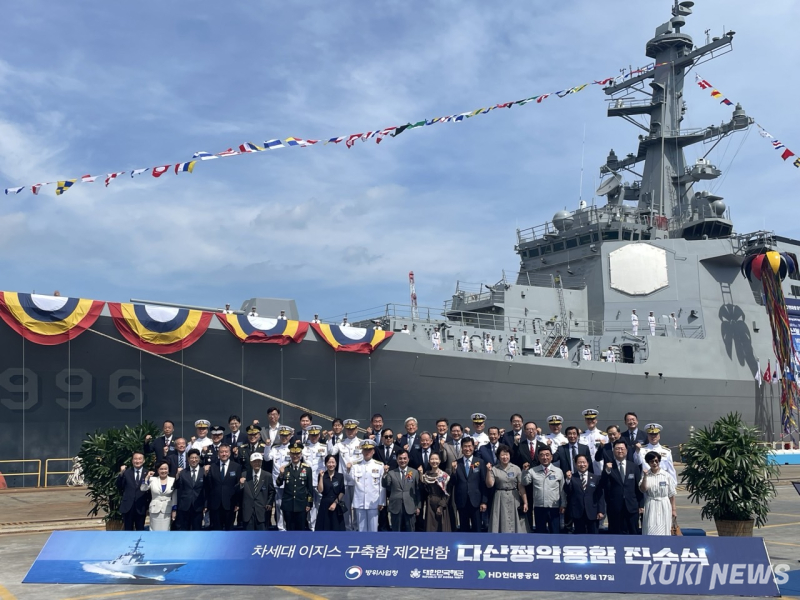 주광덕 경기 남양주시장은 17일 울산 HD현대중공업 조선소에서 열린 차세대 이지스 구축함 ‘다산정약용함’ 진수식에 참석했다. ‘다산정약용함’은 정조대왕급(KDX-Ⅲ Batch-Ⅱ) 2번함으로, 첨단 전투체계를 갖춘 대형 해군 구축함이다.