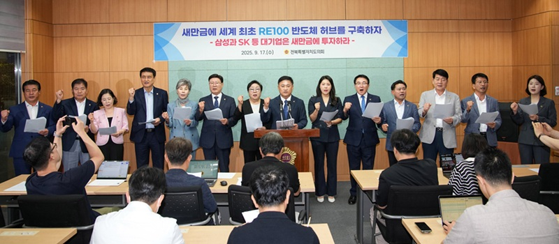 전북특별자치도의회가 새만금에 세계 최초 RE100 산업단지로 반도체 허브를 구축, 삼성과 SK 등 반도체 대기업의 투자 유치를 촉구했다.