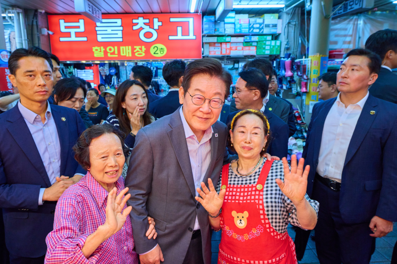 이날 이 대통령은 상인들과 악수하고 셀카 촬영 요청에 흔쾌히 응했다. 그러면서 상인들에게 체감 경기가 어떤지 물었다. 상인들은 “힘들지만 점점 더 나아지고 있다”, “대통령님이 더 애써 달라”고 답했다.