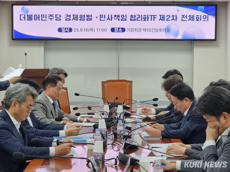 한편 같은 회의에 참석한 허영 민주당 원내정책수석부대표는 “정부와 함께 3000개가 넘는 경제 형벌 관련 판례와 6000개 가량의 법률 조항을 종합적으로 분석하고 있다”며 “정기국회 내에 입법 성과를 경제계와 국민께 보여드리겠다”고 밝혔다.