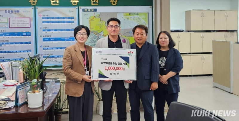 강원 태백시 심재순(태백시 공공사업과장)씨가 17일 황연동을 찾아 취약계층을 위한 성금을 기탁하고 있다. 색소폰을 연주하는 심재순씨는 "지역축제와 행사에서 색소폰 공연으로 받은 사례금과 개인사비등을 모아 올해 추석을 앞두고 소외된 취약계층 주민들에게 작게나마 도움이 될 수 있어서 보람을 느낀다"고 말했다. 평소 심씨는 취미로 시작한 악기 연주를 통해 경로당 재능기부공연 등 지역사회 봉사활동도 지속적으로 하고 있다.
