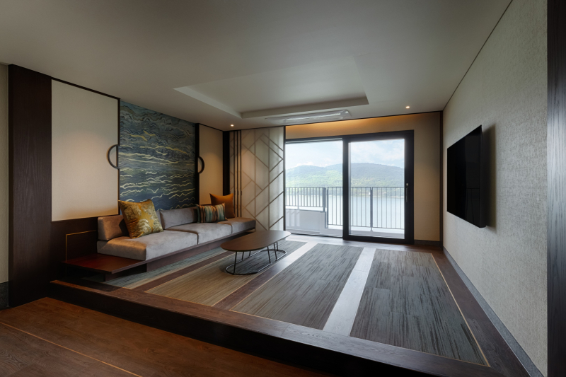 객실은 한국적인 특징을 살렸다. 리모델링 후 개관하는 리조트 특성상 층고를 새롭게 높일 수는 없었지만, 낮은 층고가 답답하지 않도록 한국적 미학을 강조한 인테리어를 적용했다. 신라의 문화적 맥락을 반영해 한옥의 툇마루와 창호를 연상시키는 디테일을 더했다.