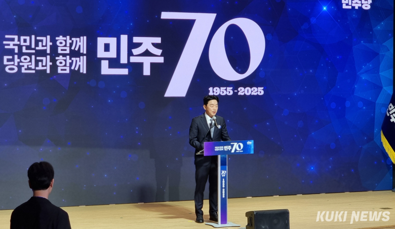 민주당은 19일 오전 서울 여의도 국회 의원회관 대회의실에서 ‘국민과 함께, 당원과 함께 민주 70’을 주제로 기념식을 열었다. 행사에는 정청래 대표, 김병기 원내대표를 비롯한 당 지도부와 원로 인사, 당원들이 참석했다. 이재명 대통령은 직접 자리하지 못했지만, 강훈식 비서실장이 축사를 대독했다.