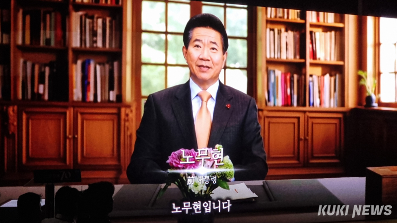 이날 기념식에서는 고(故) 신익희 민주당 초대 당대표와 민주당 출신 대통령인 고 김대중·노무현 전 대통령의 생전 목소리와 모습을 인공지능(AI)으로 구현한 축사 영상도 공개됐다.