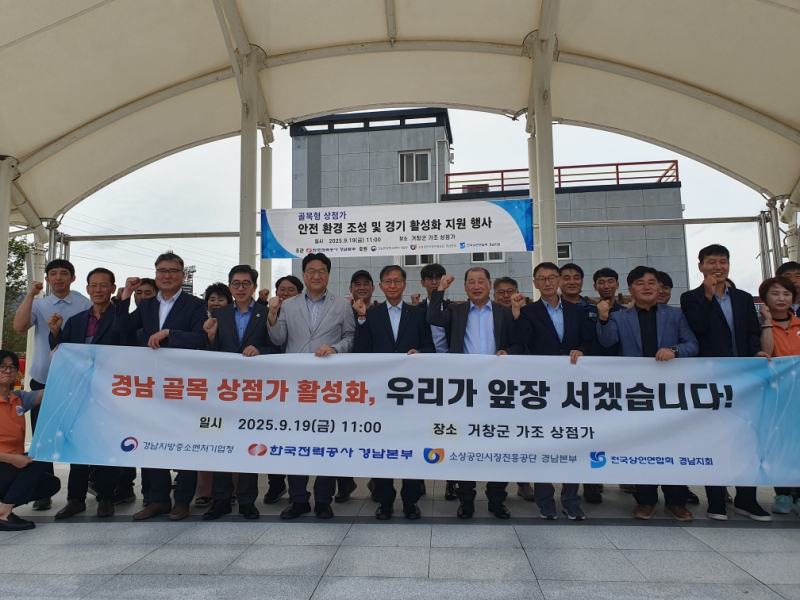 중소벤처기업부 경남지방중소벤처기업청(청장 손한국)은 19일 거창 가조상점가에서 안전환경 조성을 통한 경기활성화 지원행사를 했다. 이날 행사에는 한국전력공사 경남본부, 소상공인시장진흥공단 경남본부, 전국상인연합회 경남지회가 동참했다.
