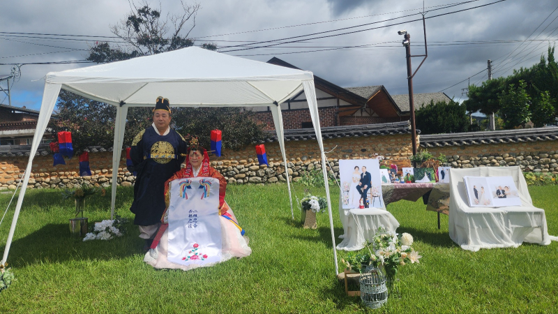 결혼식은 고택 마당에서 전통 예법에 따라 진행됐다. 신랑과 신부는 맞절하고 백년가약을 맺었으며 하객들은 밝은 웃음과 따뜻한 박수로 두 사람의 앞날을 축복했다.