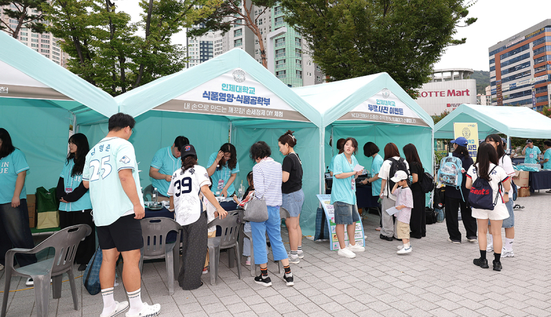 경기장 외부 게이트 광장에서는 시민 체험 부스를 운영했다. 부스는 NC 다이노스 마스코트 ‘단디’와 인제대 마스코트 ‘이니제니’ 포토존을 비롯해 미니 게임존과 의공학과 심전도 측정 체험, 식품영양·식품공학부 손세정제 만들기 부스 등을 설치해 시민들이 인제대 전공 콘텐츠를 직접 경험할 수 있도록 했다. 대학 홍보 부스에서는 특별 제작한 ‘쫌부채’를 배포하고 소정의 선물도 제공했다.
