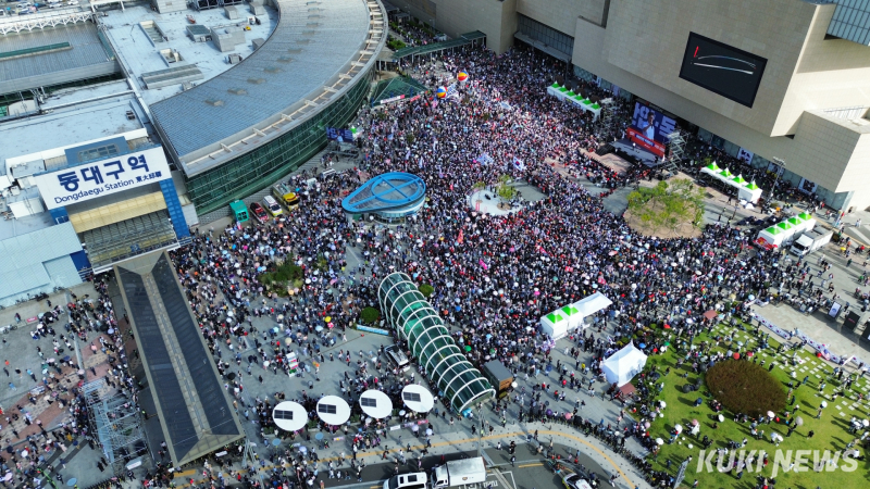 동대구역 광장을 가득 메운 인파는 현 정부에 대한 야당의 거센 저항 의지를 보여줬다.