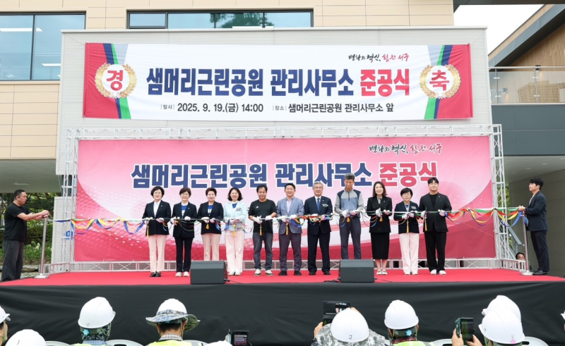 대전 서구는 지난 19일 서철모 서구청장을 비롯해 조규식 서구의회 의장, 구의원, 사업관계자, 내빈과 직원 등 50여 명이 참석한 가운데 샘머리공원 관리사무소 리모델링 준공식을 개최했다.