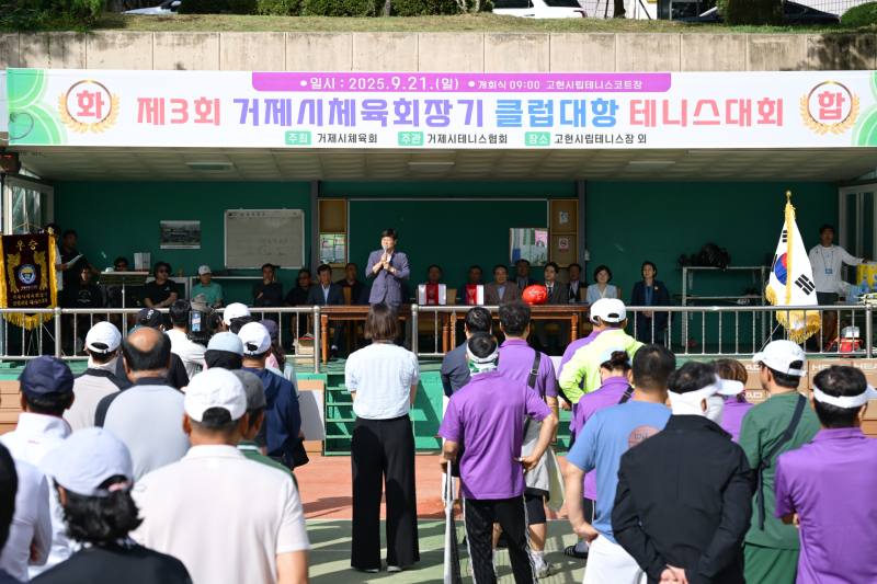 변광용 거제시장은 "오늘 대회를 위해 그동안 연습했던 기량을 마음껏 펼치시길 바라며, 테니스 동호인들에게 보다 나은 환경을 제공할 수 있도록 노력하겠다"고 말했다.
